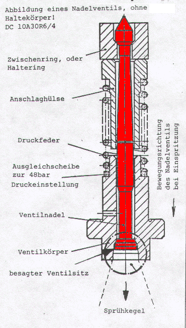 das Nadelventil in seinen Sitz zurück, somit ist das Einspritzventil
